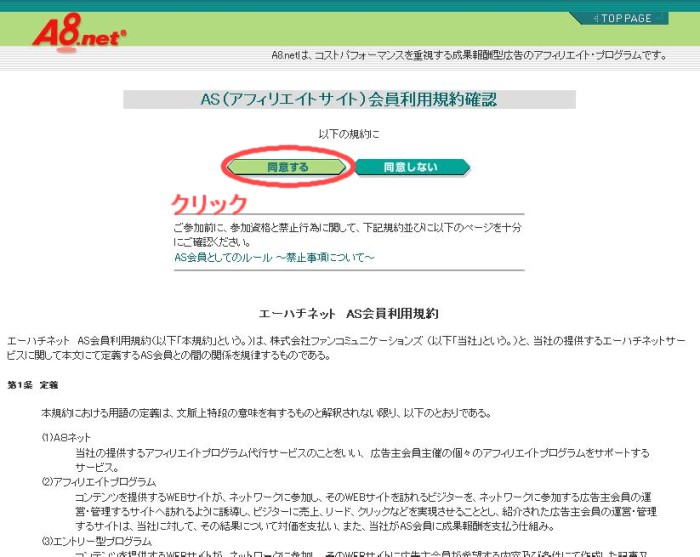 ◇2.AS(アフィリエイトサイト)会員利用規約確認を行い