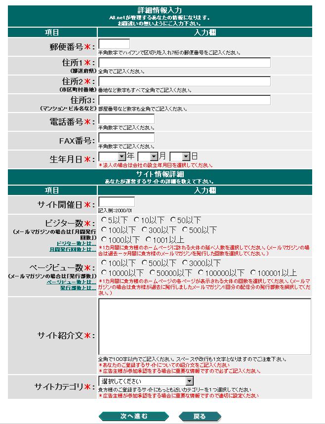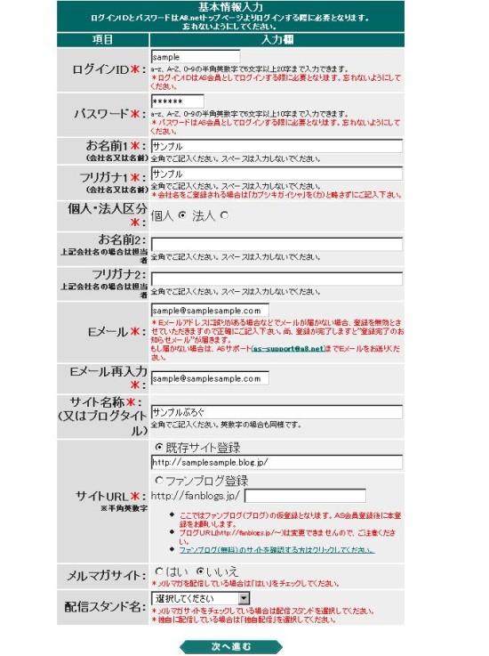 ◇3.アナタのID,パスワード,お名前,メールアドレス,サイトのURL等の情報を入力してください。