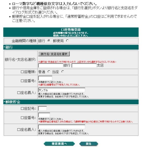 ※ご家族の名義の口座ではなくアナタ自身の口座にしてください
